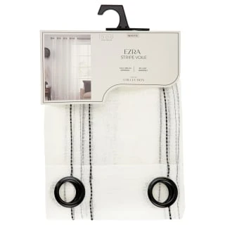 Complete your living, dining and bedrooms with this beautiful Ezra Stripe Voile With Black Eyelets.